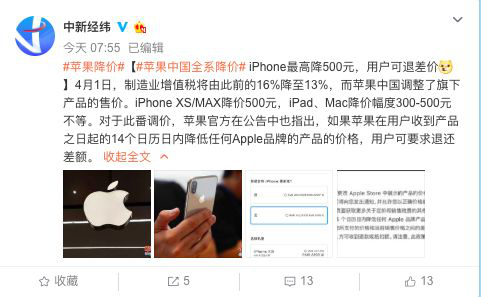 其中,iPhone XS/MAX降價(jià)500元,iPad、Mac降價(jià)幅度不等。
