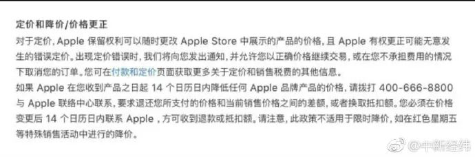 蘋(píng)果官方在公告中也指出,如果蘋(píng)果在用戶收到產(chǎn)品之日起的14個(gè)日歷日內(nèi)降低任何 Apple品牌的產(chǎn)品價(jià)格,用戶可要求退還差額。