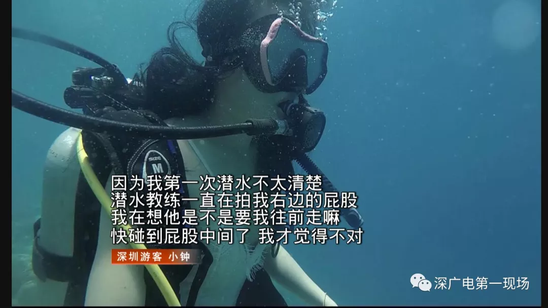 深廣電第一現(xiàn)場(chǎng)2019年4月11日訊 近幾年,越來(lái)越多深圳市民喜歡到東南亞海島旅游,而學(xué)潛水、探索海底世界也逐漸成為了一項(xiàng)熱門運(yùn)動(dòng),就算你還沒有體驗(yàn)過(guò)想必也一定聽說(shuō)過(guò)啦!不過(guò),最近有市民跟我們報(bào)料她們?cè)隈R來(lái)西亞潛水時(shí)遭遇了水下“色狼”!不僅被揩了油而且還不知道怎么處理!