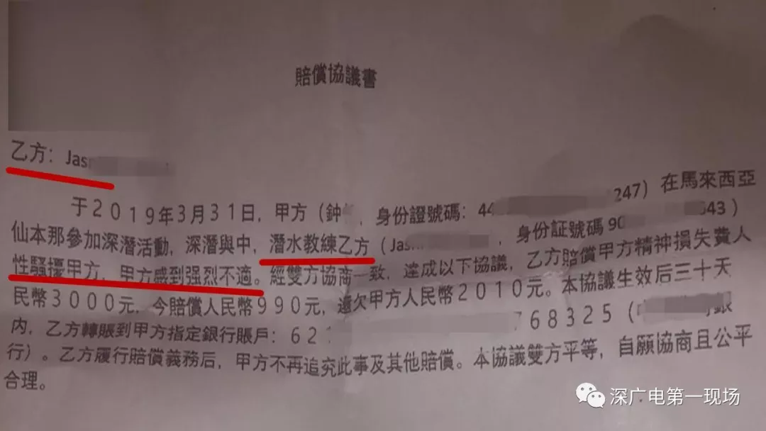 而同行的小丹表示,她也受到了潛水教練的性騷擾,教練有意無(wú)意觸碰她的敏感部位,后期更是直接上手。