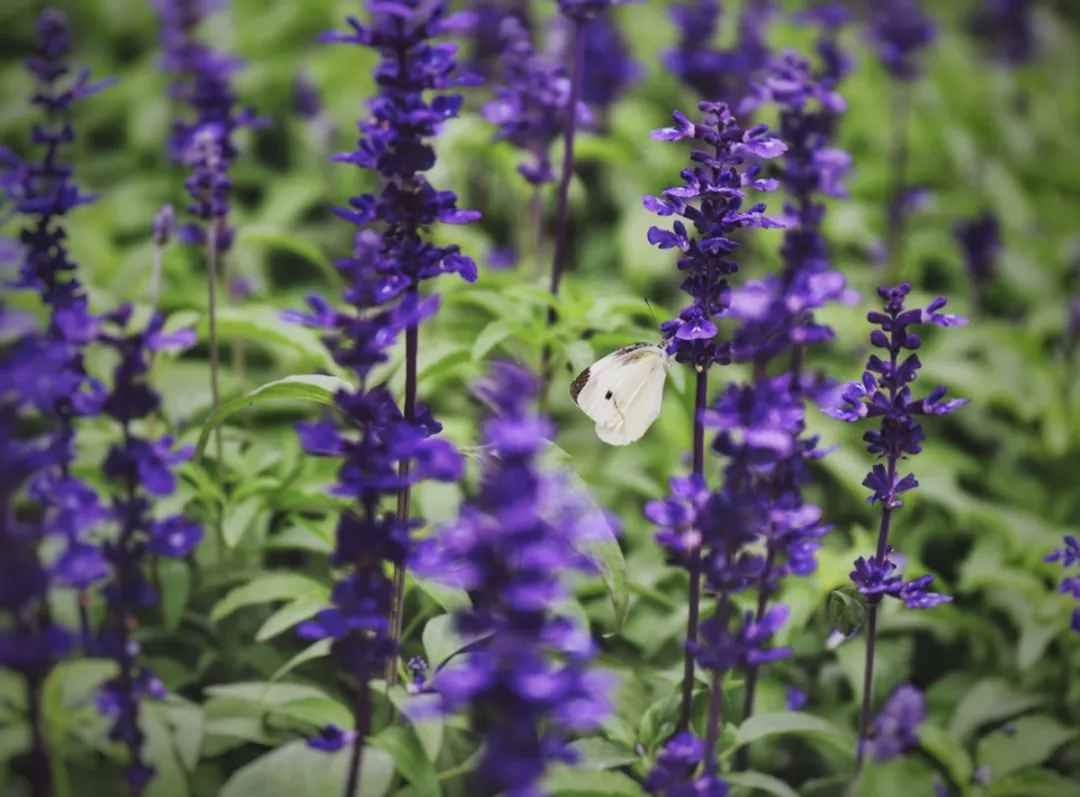 藍(lán)花鼠尾草清幽典雅,適合成片種植于花壇作為景觀,在寶安四季公園內(nèi)就有許多。
