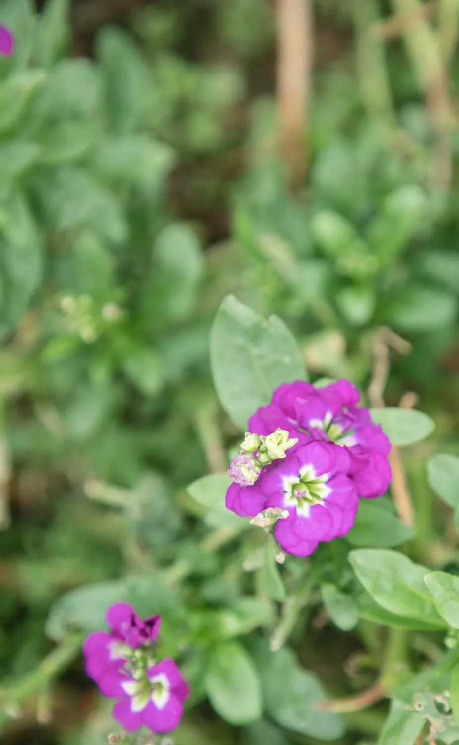 紫羅蘭芳香怡人,因此它還有個別名叫“草桂花”。一株紫羅蘭上會長出好幾朵花,花團簇擁的樣子,分外好看。