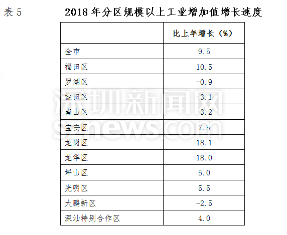 2018年,深圳全部工業(yè)增加值9254.00億元,比上年增長9.0%。規(guī)模以上工業(yè)增加值增長9.5%。在規(guī)模以上工業(yè)中,國有企業(yè)增加值下降21.4%;集體企業(yè)下降5.6%;股份制企業(yè)增長12.8%;外商及港澳臺(tái)商投資企業(yè)增長3.8%。分輕重工業(yè)看,輕工業(yè)增加值增長6.2%;重工業(yè)增加值增長10.2%。