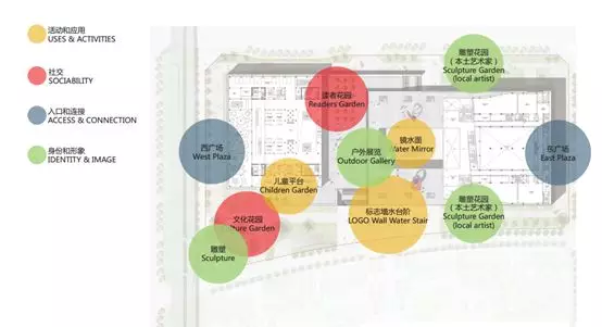 同時(shí),設(shè)計(jì)定義了不同的功能性景觀分區(qū),一靜一動(dòng)、或?qū)庫o或喧囂、光影交融、密集與開放、集聚與獨(dú)處的可變空間,為主體建筑附加了多樣化的室外活動(dòng)場(chǎng)所,例如專門為圖書館訪客設(shè)置的讀者花園、兒童平臺(tái)、文化花園,以及在美術(shù)館區(qū)域設(shè)置的雕塑花園、戶外展覽區(qū)及鏡水面廣場(chǎng)。滿足不同的活動(dòng)場(chǎng)景下市民對(duì)空間的需求,讓城市空間真正地為城市及市民所用。