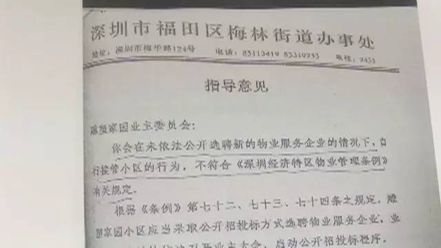 朱先生說(shuō),那名業(yè)主在發(fā)出他的舉報(bào)信的同時(shí),還發(fā)了一張梅林街道辦的指導(dǎo)意見: