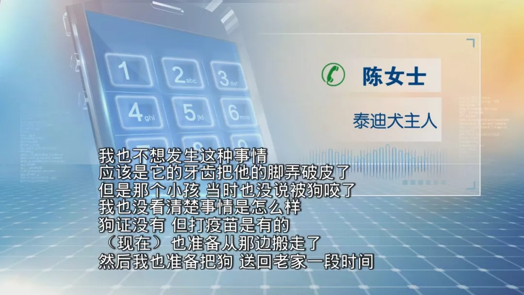 今天早上,城管部門也前往了小區(qū)了解情況,但涉事的狗主陳女士并不在家。記者隨后電話聯(lián)系到上陳女士,對(duì)方表示,這只泰迪犬她已經(jīng)養(yǎng)了兩年,每年都有去注射狂犬疫苗。