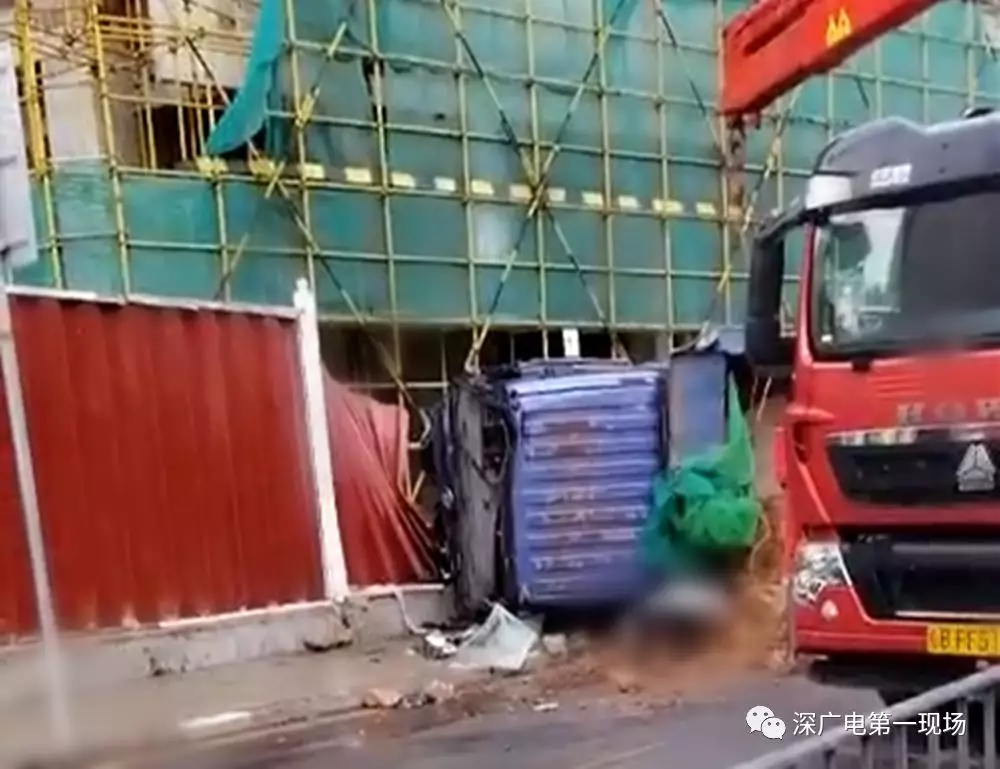 羅湖一渣土車道路側(cè)翻,車頭已嚴(yán)重變 ...