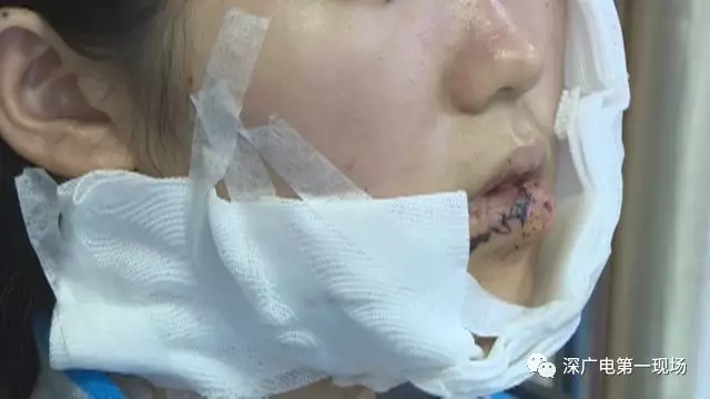 ↑下午兩點(diǎn),在寶安人民醫(yī)院急診科的創(chuàng)傷中心,小楊正在接受治療,她的臉上綁著繃帶,縱橫交錯的傷口依然清晰可見。
