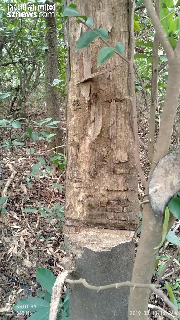 該網(wǎng)友提及的應(yīng)人石村位于深圳石巖,從地圖上看,其“后山”與羊臺山森林公園連為一體,是附近居民閑暇時度假踏青的重要選擇。據(jù)了解,網(wǎng)友“詩奴L”于今年3月中旬上山游玩,游玩途中發(fā)現(xiàn)原本茂盛的野生沉香樹大多遭人砍伐?!安环ǚ肿痈F盡一切手段,用鉆、削、劈、鋸等來對沉香樹進行摧殘,這簡直是屠殺式的洗劫!”該網(wǎng)友表示,看到這么多野生沉香樹被殘暴砍伐,真地讓人很氣憤。