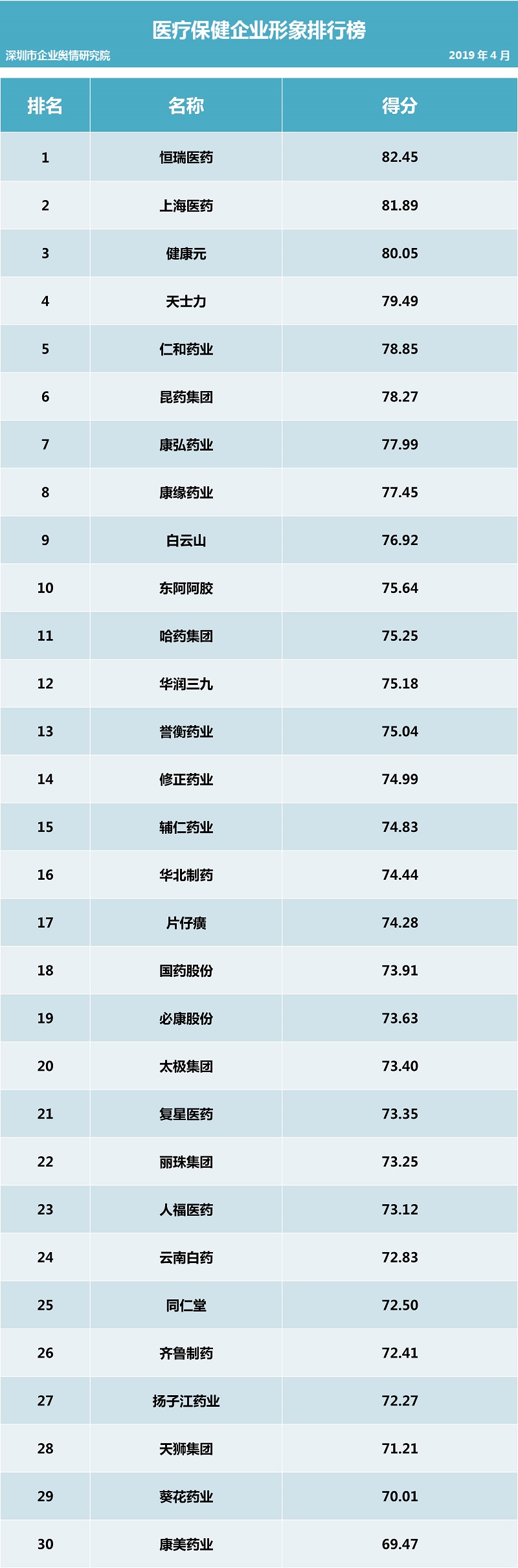 二、醫(yī)療保健行業(yè)企業(yè)公眾形象排行榜: