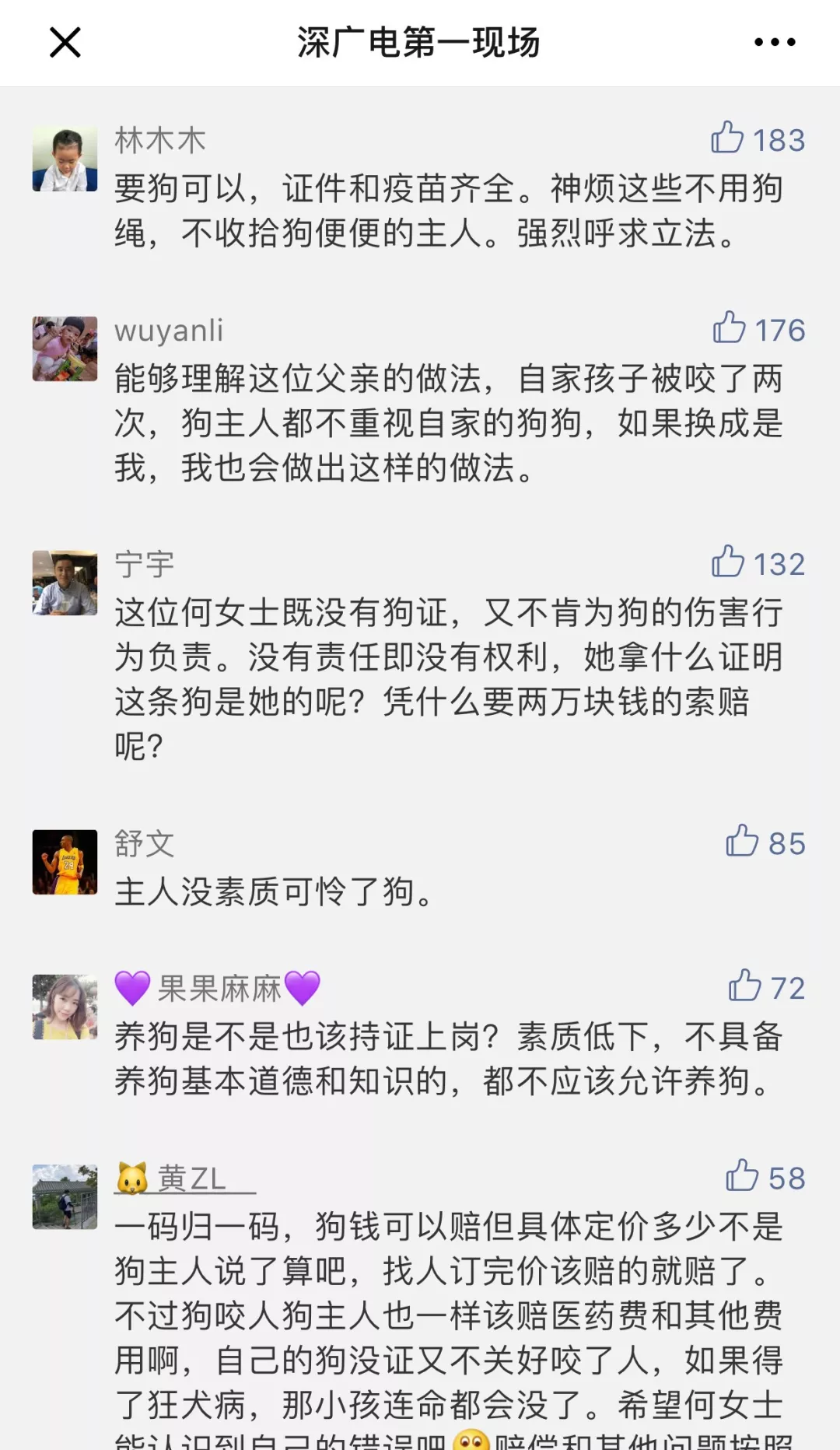 深廣電第一現場2019年5月13日訊 最近我們報道了一起新聞,龍崗一位家長因為小孩被狗傷一怒之下把狗打死了,遭到狗主人索賠兩萬。