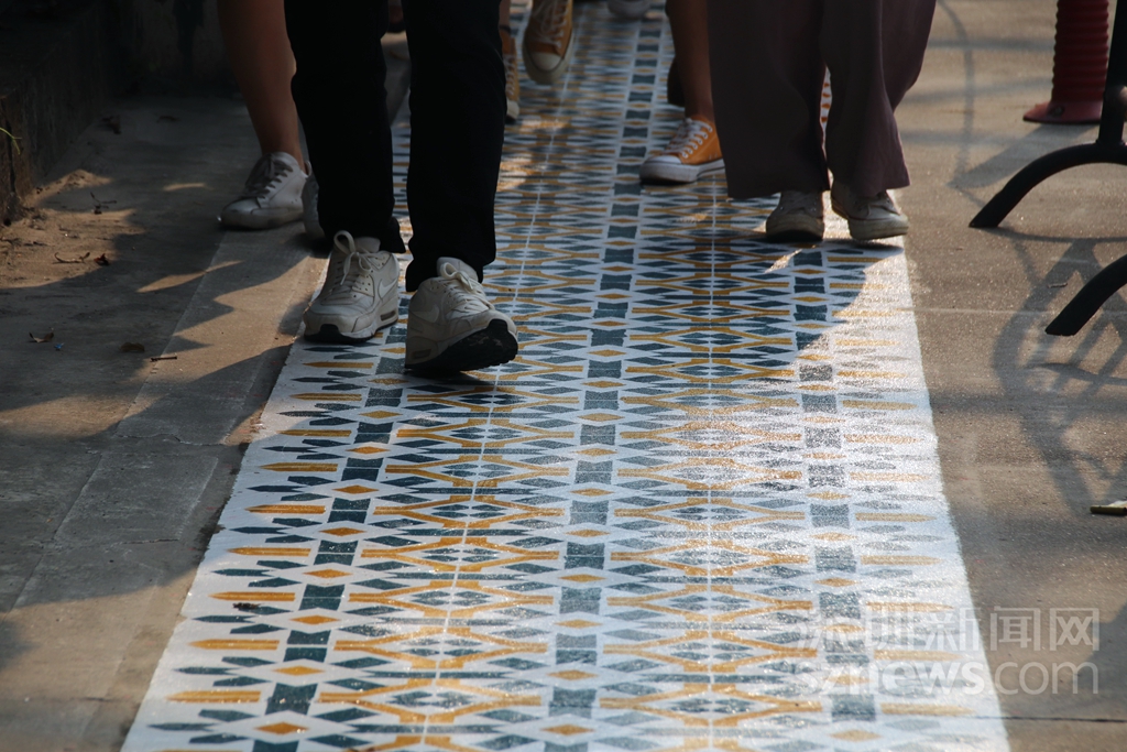 開幕前,藝術(shù)家邀請(qǐng)公眾與志愿者共同完成花磚涂鴉作品《安全地帶》(主辦方供圖)