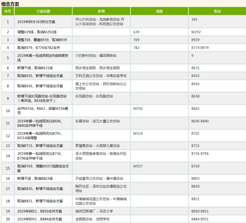 深圳新聞網(wǎng)5月20日訊(記者 涂勝)5月20日下午,深圳市交通運(yùn)輸局發(fā)布關(guān)于征求《2019年第一批公共汽車線路規(guī)劃方案》(征求意見稿)意見的通告。記者從規(guī)劃方案中的獲悉,本次線路公共汽車線路規(guī)劃方案以完成各區(qū)骨干網(wǎng)搭建及區(qū)域間快線、骨干線網(wǎng)銜接為工作重點(diǎn),共包含線路方案63個,涉及線路79條(其中,新增5條,調(diào)整24條,合并、取消50條,運(yùn)力從原特區(qū)內(nèi)向原特區(qū)外轉(zhuǎn)移58臺)。