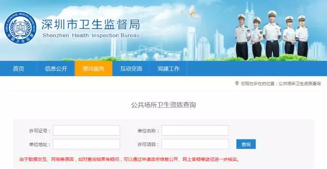 通過深圳市衛(wèi)生監(jiān)督局官方網(wǎng)站,可查詢?cè)撋蠲廊輬?chǎng)所是否取得衛(wèi)生許可證。