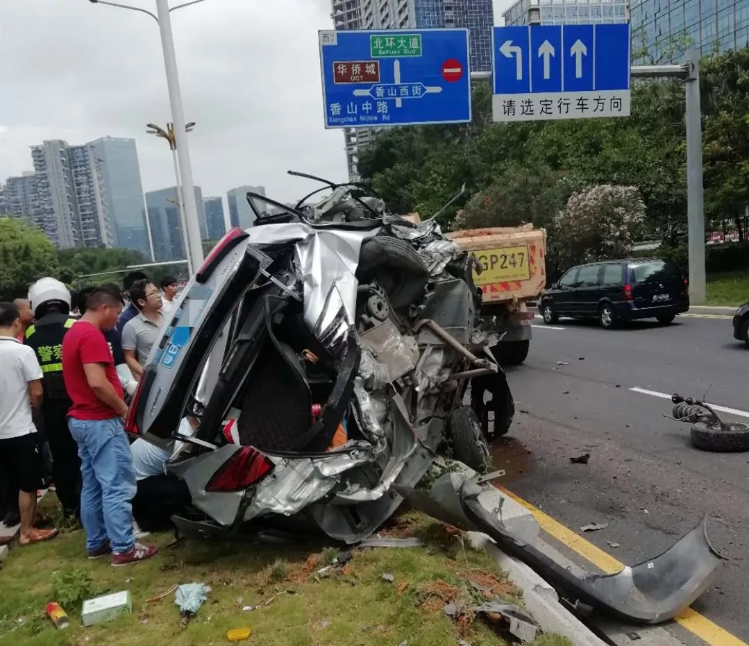 幾乎在同一時間段,又有觀眾在粉絲群發(fā)來報料說在福田區(qū)僑香路又發(fā)生一起泥頭車撞小車事故,小車被撞得面目全非!