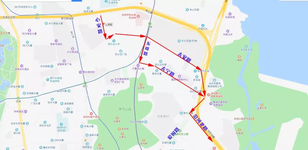 布心路南側(cè)輔道(東行)往愛國路方向道路中,心安路與東曉路至布心路主路入口道路已于2019年5月24日21時,被永久封閉。