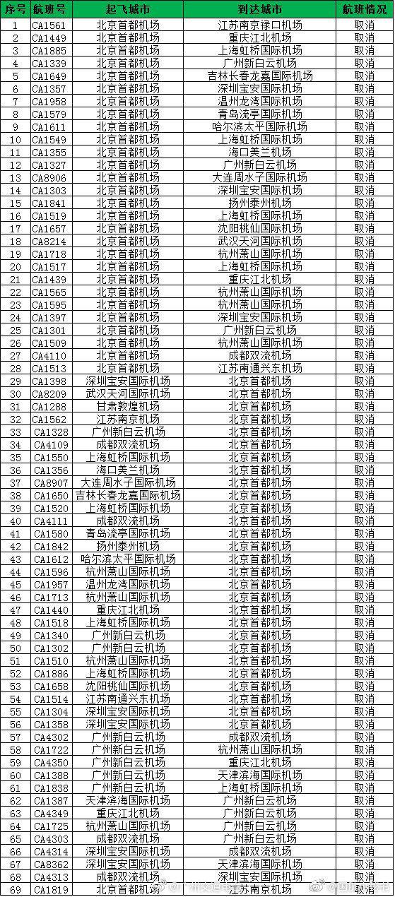 受雷雨天氣影響,國航取消69個往返北廣深航班!
