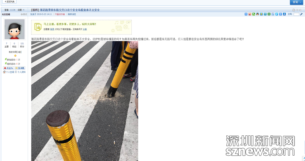 深圳新聞網(wǎng)2019年5月29日訊(記者 劉婷)“蓮花路景田東路交叉口這個安全島看起來不太安全。”近日,網(wǎng)友“專打蒼蠅”在深圳論壇爆料稱,蓮花路景田東路交叉口安全島警示樁受損,存在安全隱患。5月29日,記者來到該路段實(shí)地勘察,發(fā)現(xiàn)安全島受損警示樁已全部整改。 (原帖文:蓮花路景田東路交叉口這個安全島看起來不太安全)