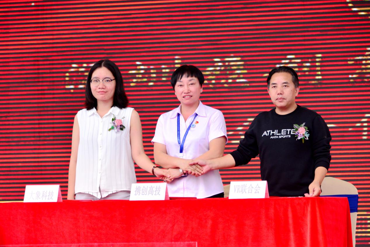 揭牌儀式上學(xué)校分別與深圳市虛擬現(xiàn)實(shí)產(chǎn)業(yè)聯(lián)合會(huì)、深圳市電子競技運(yùn)動(dòng)協(xié)會(huì)進(jìn)行了校企合作簽約。