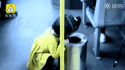 一個(gè)小學(xué)生在下車前