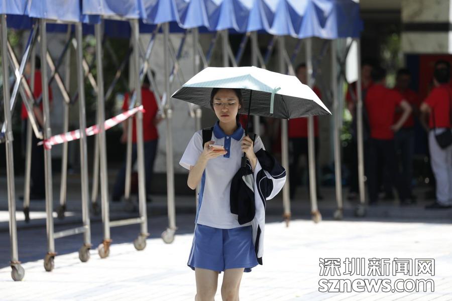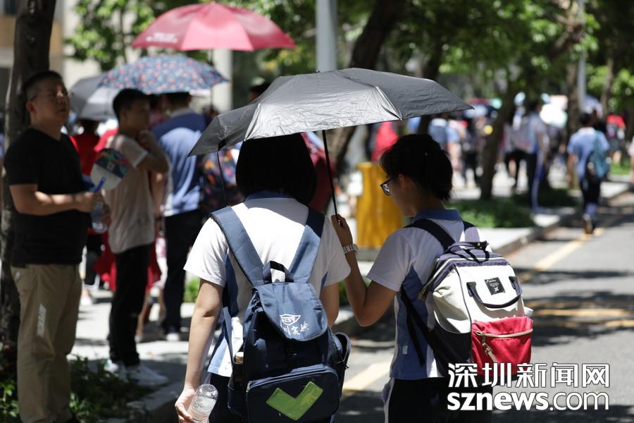 高考首日,深圳夏天的炎熱初顯威力,各路高考保障人員在熾熱的陽光下有序開展工作:交警鐵騎護送考生順利抵達考場;愛心出租車免費接送考生;高考志愿者幫助協(xié)調(diào)考場外秩序……同時,比陽光更“熾熱”的是送考家長們的熱切和關(guān)心。