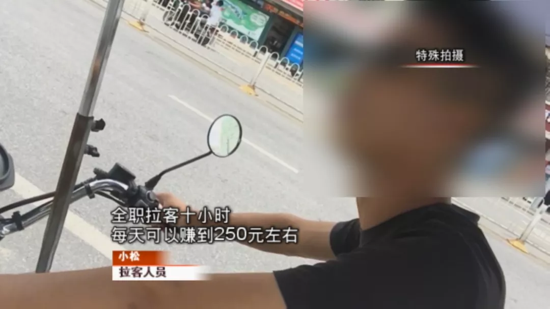 他們還表示,電單車一天的成本是三塊錢左右而摩托車?yán)偷某杀緞t高達三十多塊錢,但是由于速度快效率高,能夠更好躲避執(zhí)法,不少拉客人員都選擇使用摩托車。