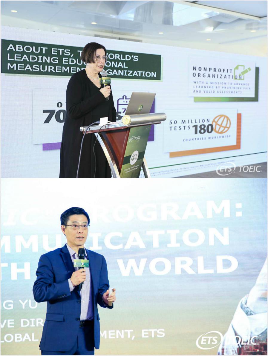 美國ETS國際部總經(jīng)理Shelly Punchatz、托業(yè)產(chǎn)品管理總監(jiān)余峰博士,代表ETS分別出席了上海站、深圳站慶典活動。在慶典活動中,兩位ETS總部高層回顧了TOEIC40年的卓越發(fā)展成就,以及助力全球多個國家及地區(qū)企業(yè)實(shí)現(xiàn)國際化發(fā)展的成功案例。他們表示,語言是架起經(jīng)濟(jì)和文化的橋梁,托業(yè)已成為全球應(yīng)用最廣泛、最具有含金量的商務(wù)和職業(yè)英語測評標(biāo)準(zhǔn)。在國際化的商務(wù)溝通中,TOEIC越來越成為企業(yè)不可或缺的合作伙伴。