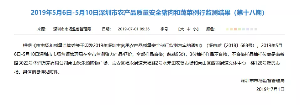 發(fā)布的豬肉產品和蔬菜抽檢結果就對啦!