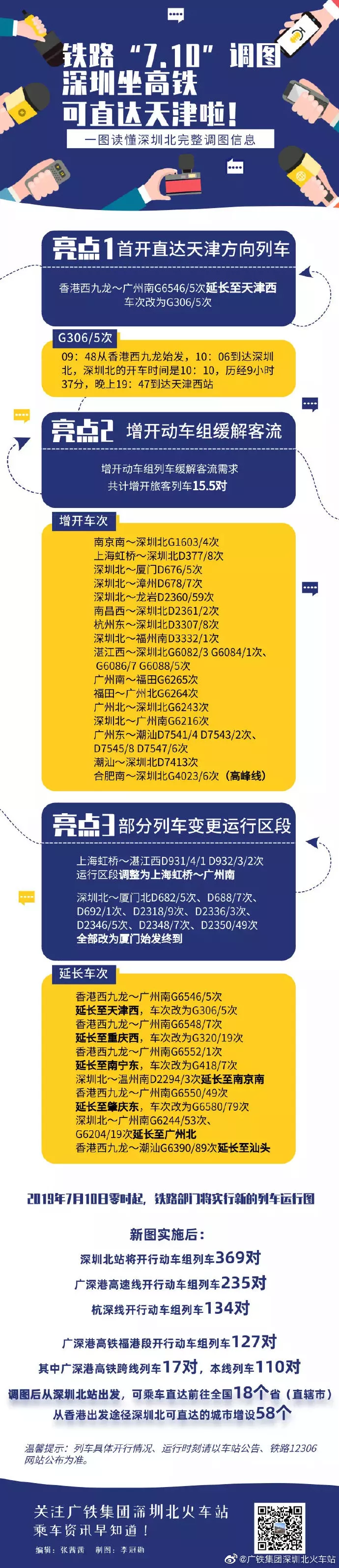 根據(jù)新的運(yùn)行圖安排,深圳北站將開行動車組列車369對,廣深港高速線開行動車組列車235對;杭深線開行動車組列車134對。“7·10”調(diào)圖后,深圳北站首開前往天津方向列車,屆時從深圳北站出發(fā),可乘車直達(dá)前往全國18個?。ㄖ陛犑校?;從香港出發(fā)途徑深圳北可直達(dá)的城市增設(shè)58個。