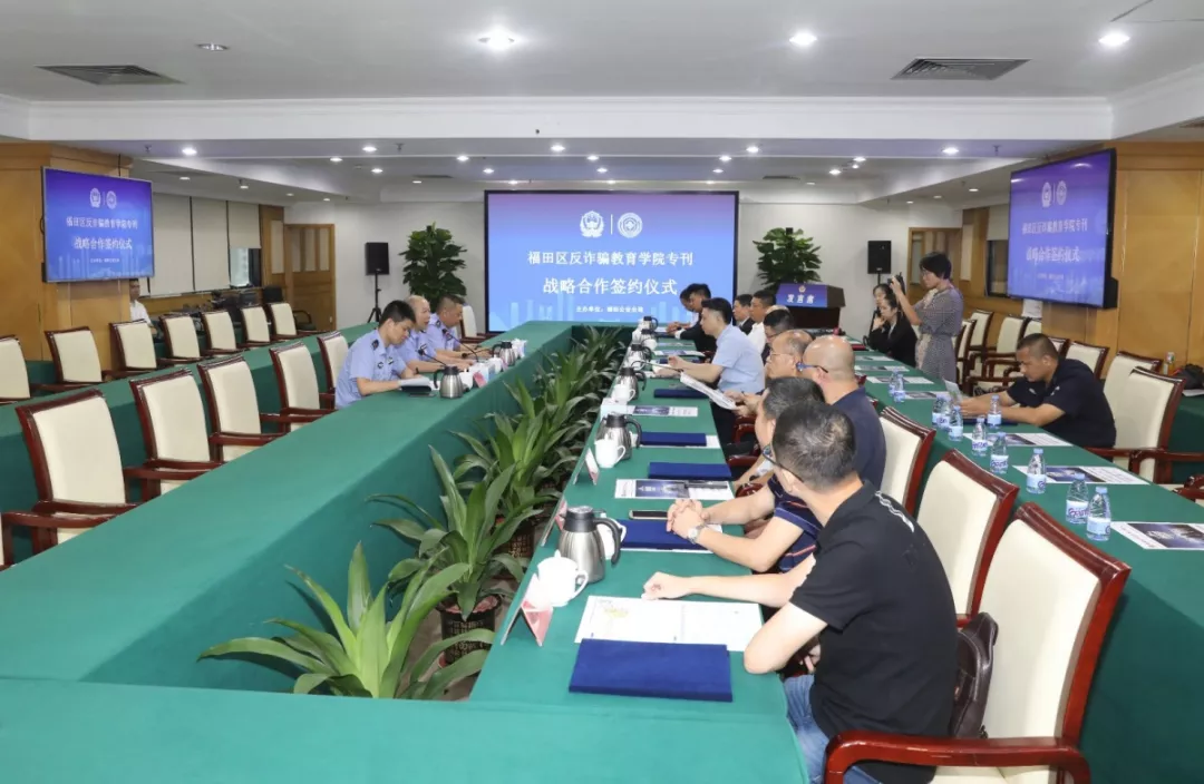 活動現場,福田分局分別與福田區(qū)委政法委、蓮花街道辦、北大深圳醫(yī)院、深圳外國語學校、中國郵政儲蓄銀行、聯(lián)想有限公司(深圳)、平安大廈物業(yè)、馬成時代廣場、卓越世紀廣場、山姆會員店、梅林農批市場、順豐快遞共12家單位和企業(yè)簽訂了《福田反詐騙教育學院??瘧?zhàn)略合作協(xié)議》。