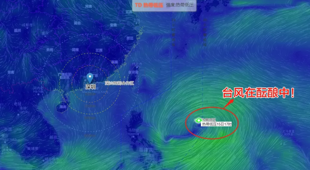 熱帶低壓目前距深圳市約1900公里,