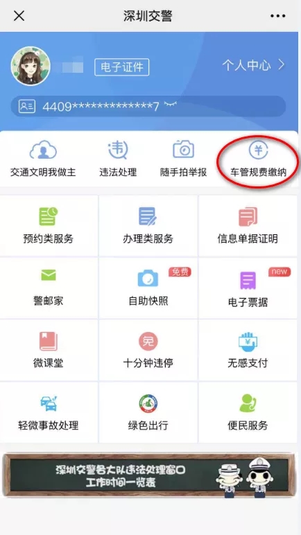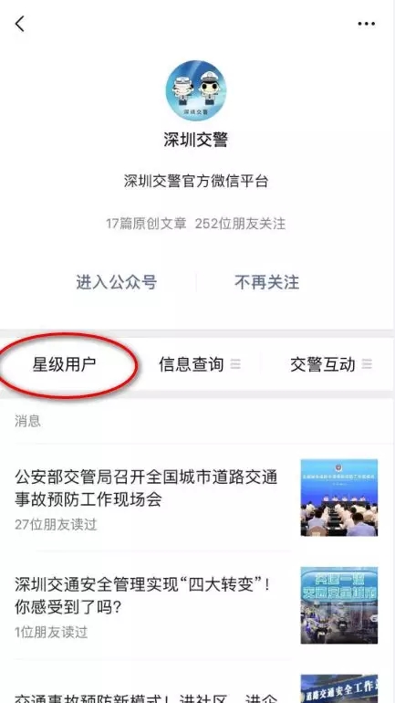 01 車主本人/代辦人關(guān)注【深圳交警】微信公眾號,點擊進(jìn)入【星級用戶】,注冊登錄星級用戶后,在頁面選擇【車管規(guī)費繳納】。