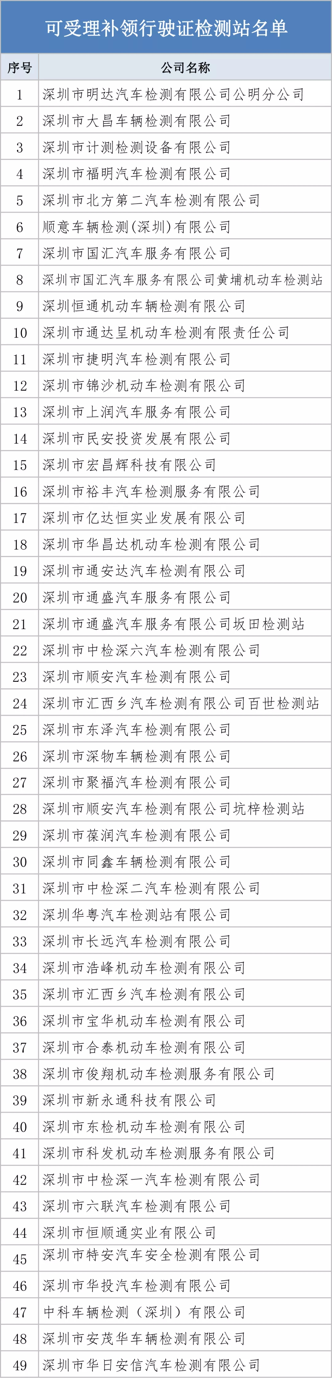 僅限深圳機動車,在下列49家檢測站辦理年檢業(yè)務才可以在檢測站申請補換領(lǐng)行駛證!