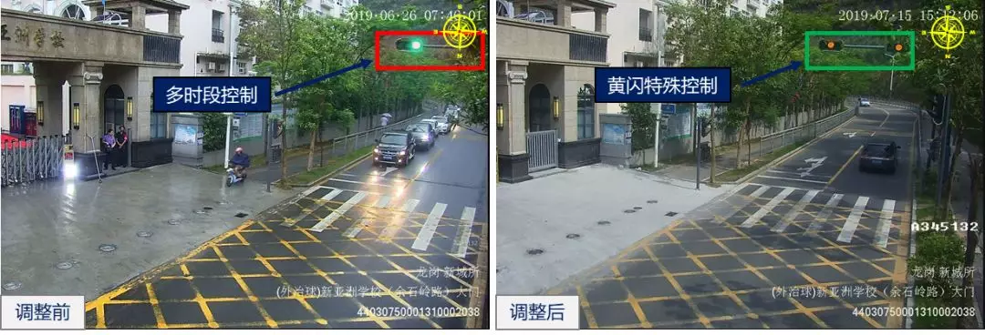龍崗怡翠/新亞洲學校路口行人過街需求主要集中于上下學期間,近期暑期開始,行人過街需求小,路口調(diào)整至全天黃閃控制模式,以提高機動車通行效率。