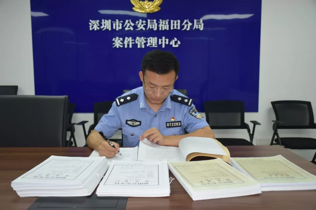 24小時值班后再繼續(xù)加班是靳鵬的工作常態(tài),他馬不停蹄地趕往出入境大隊參加會議。會議結束,靳鵬并沒有離開,而是將卷宗按順序鋪好,開始了他的工作——查看證據(jù)收集情況和提供法律支撐。150頁A4大小的卷宗裝訂成冊,足足4大本,靳鵬邊看邊拿著筆“刷刷刷”地在紙上做記錄。