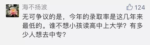 所以,初中生家長無疑是最焦慮的。考不上公辦普高,是多花點(diǎn)錢去民辦普高還是進(jìn)入職高抑或是是輟學(xué)進(jìn)入社會,這是一個問題。雖然說好的職高也算不錯的出路,但好的職高也不多啊,更何況很多家長沒法接受職高,在很多家中眼中,讀職高就是混日子的;難道初中畢業(yè)年紀(jì)輕輕就要進(jìn)入社會嘛?絕大部分家長肯定不希望是這樣的,但殘酷的事實(shí)擺在那兒,于是他們焦慮著。