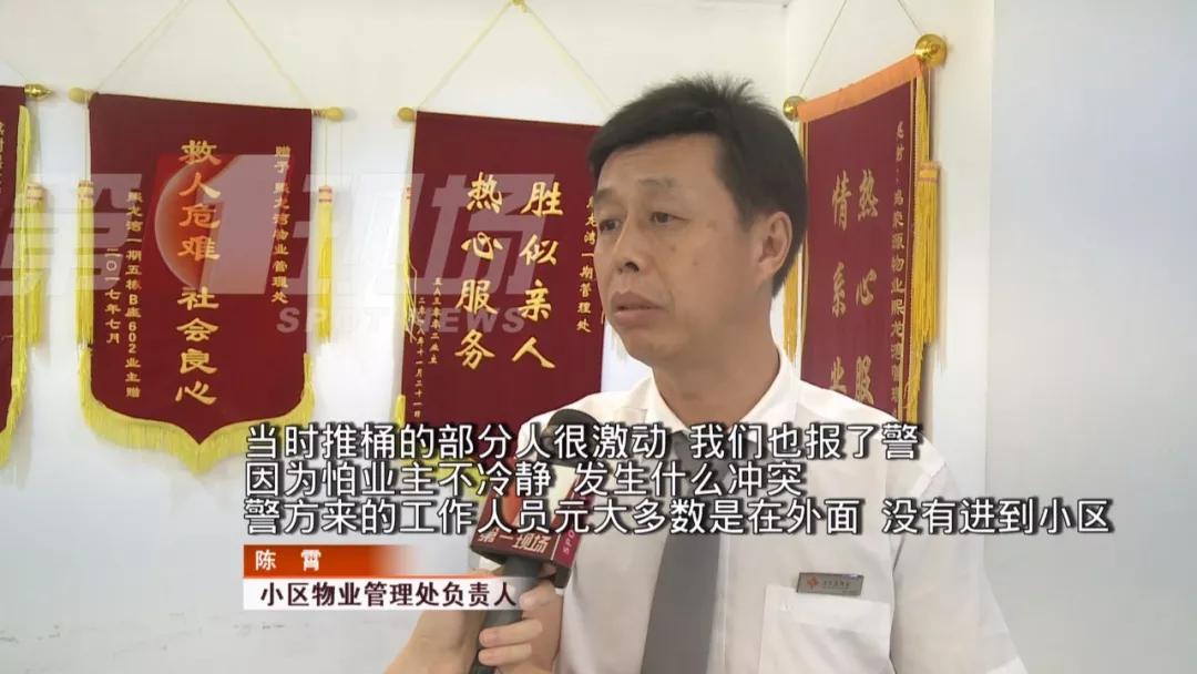 今天,記者來(lái)到管理處了解情況,管理處負(fù)責(zé)人陳先生告訴記者,昨晚之所以驚動(dòng)警方,是因?yàn)檫@些業(yè)主在表達(dá)訴求的過(guò)程中,做出了比較過(guò)激的行為,居然將小區(qū)設(shè)置的分類(lèi)垃圾桶,直接推進(jìn)物業(yè)管理處。