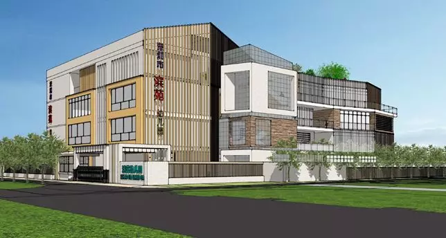 室外環(huán)境設(shè)有滿足孩子們的橡膠跑道、人工草坪,大型娛樂(lè)滑梯設(shè)施等等,各層也設(shè)置了公共平臺(tái),為幼兒提供多樣化的樂(lè)趣,滿足幼兒好奇、好動(dòng)、好模仿的特點(diǎn)。在屋頂設(shè)置了綠植與小型趣味玩具區(qū),讓幼兒接觸自然,喜歡自然。