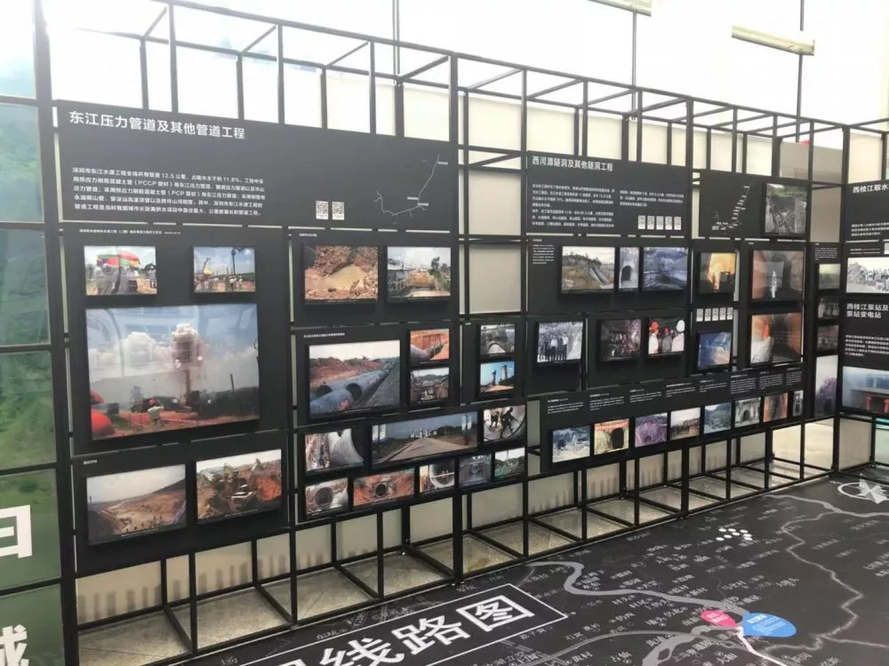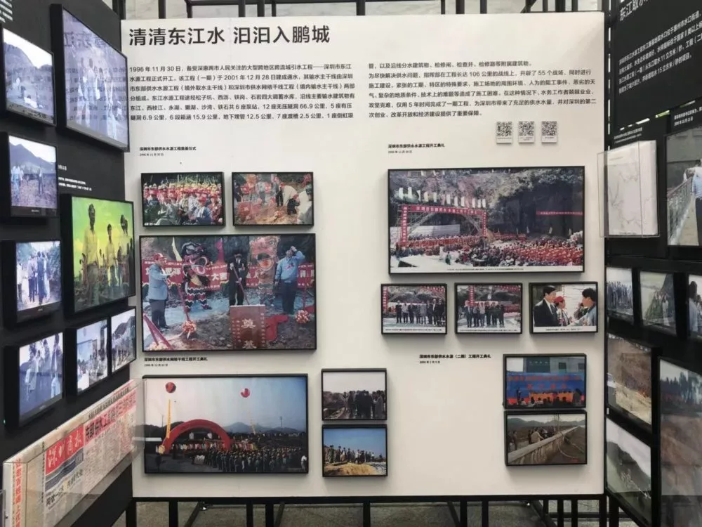 第三部分“清清東江水汩汩入鵬城”,著重展示東江水源工程建設(shè)的全過(guò)程。以工程線(xiàn)路為展覽線(xiàn)索,再現(xiàn)水務(wù)工作者在長(zhǎng)達(dá)106公里的戰(zhàn)線(xiàn)上奮戰(zhàn)的場(chǎng)面。通過(guò)輸水設(shè)施的新舊照片對(duì)比,描繪出一條在深惠兩城平地崛起的深圳“生命線(xiàn)”。