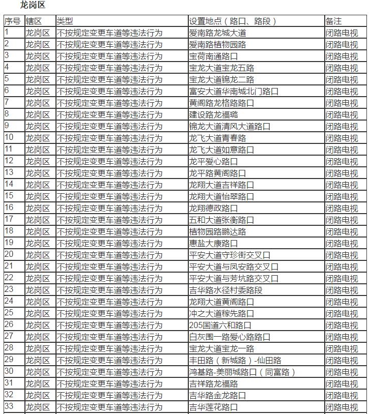以下是深圳194套“電子警察”分布區(qū)域詳情: