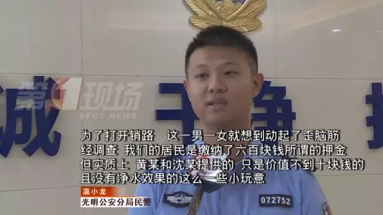 民警得知,有一男一女兩名自稱是“水質(zhì)管理局”負責(zé)自來水的工作人員打著“水質(zhì)不佳,水質(zhì)管理局規(guī)定必須安裝”的旗號,向居民推銷凈水器。由于有看似正規(guī)的工作證件,同時流程完善,還承諾事后可以根據(jù)需求退款,有不少市民都繳納了600元的押金,直至發(fā)現(xiàn)并沒工作人員上門安裝服務(wù)時,再向房東等人員核實后,才發(fā)現(xiàn)被騙。