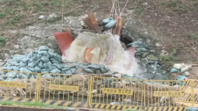 目前導(dǎo)流沒做完,所以大量污水就沿著污水管道反涌回去,從油松河上游溢流出來。