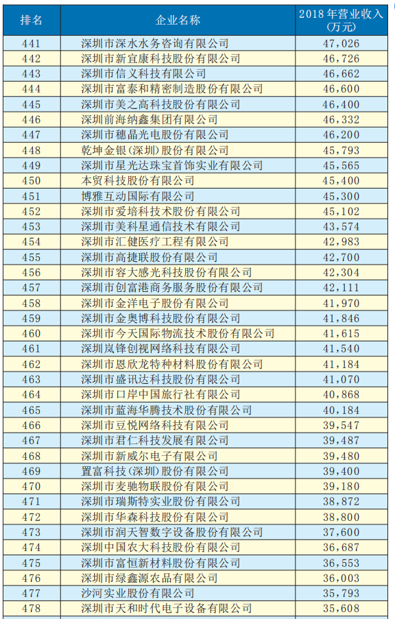 深圳商報(bào)2019年7月30日訊 由深圳市企業(yè)聯(lián)合會(huì)、深圳市企業(yè)家協(xié)會(huì)(以下簡(jiǎn)稱深圳企聯(lián))編撰的《2019深圳500強(qiáng)企業(yè)發(fā)展報(bào)告》即將正式對(duì)外發(fā)布。《2019深圳500強(qiáng)企業(yè)發(fā)展報(bào)告》中的“2019深圳500強(qiáng)企業(yè)”名單按照營(yíng)業(yè)收入排序,今日正式予以公示。