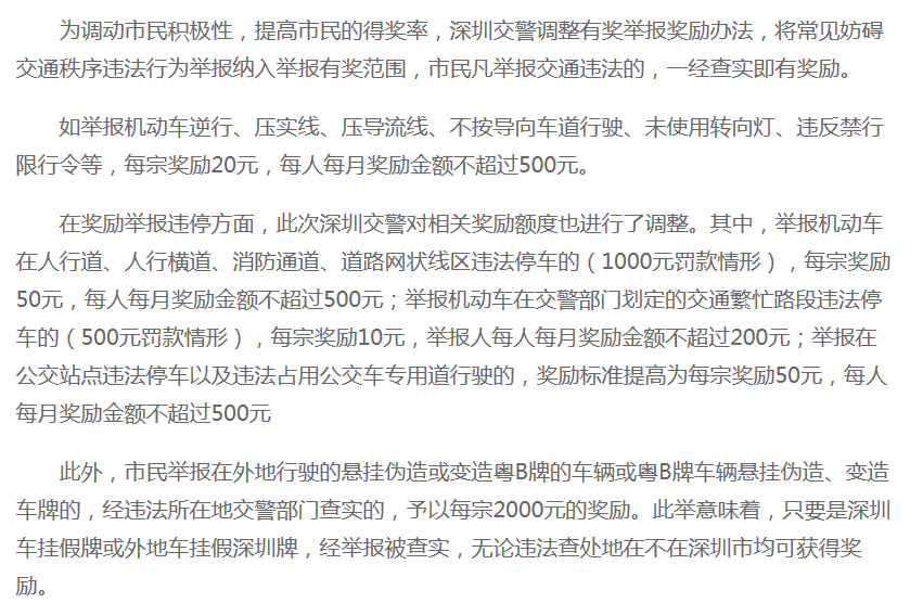 交警蜀黍會視情況給你獎金的!因為自7月29日起,深圳所有交通違法都可有獎舉報啦