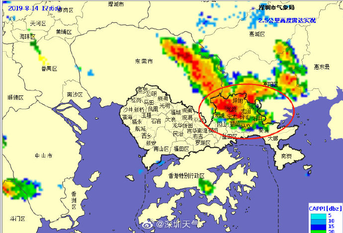 過(guò)去1小時(shí),龍崗區(qū)(坪地、寶龍、龍崗街道)和坪山區(qū)(坪山街道)累計(jì)雨量已達(dá)暴雨,預(yù)計(jì)強(qiáng)降雨還將持續(xù)1小時(shí),深圳市氣象臺(tái)于2019年08月14日17時(shí)50分在龍崗區(qū)(坪地、寶龍、龍崗街道)和坪山區(qū)(坪山街道)發(fā)布暴雨橙色分區(qū)預(yù)警,全市進(jìn)入暴雨防御狀態(tài),請(qǐng)注意防御。