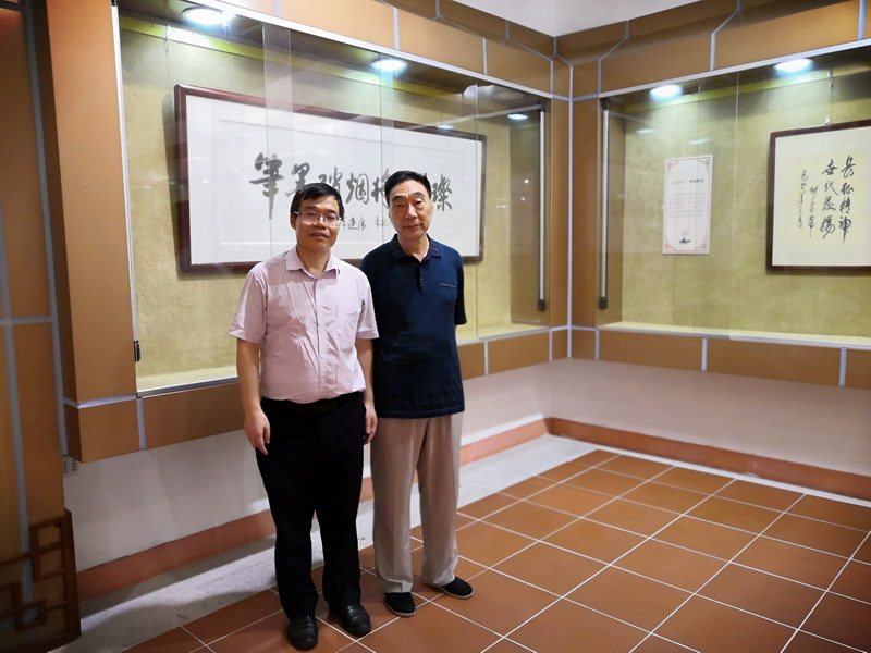 ▲ 深圳報(bào)業(yè)集團(tuán)駐穗記者劉良龍和軍旅作家吳東峰(右)在開國將軍手跡展現(xiàn)場。