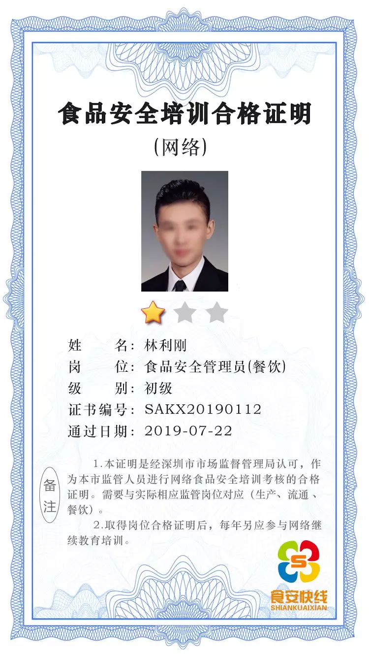 首先:食品安全管理員應(yīng)取得崗位“培訓(xùn)合格證明”;
