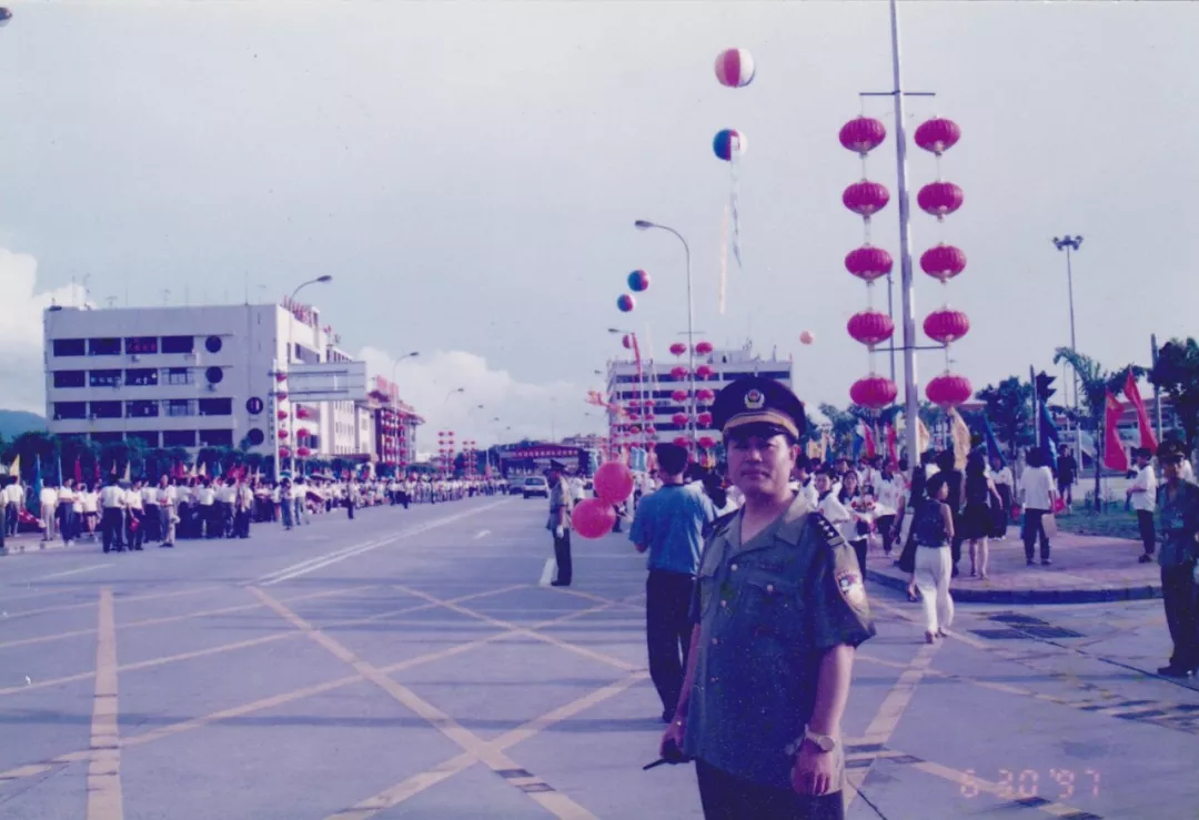讓我們把時鐘撥回到1985年,那一年5月,皇崗口岸正式動工興建,飛檐斗拱,美輪美奐,陽光下,黃色的琉璃瓦屋頂格外搶眼,白墻紅柱,一座極具中國風的口岸一點點清晰起來。與之一并推進籌建的便是皇崗口岸派出所的前身“深圳市公安局皇崗口岸分局”。據當年皇崗口岸分局時任政委賴魯濱回憶,1986年,分局籌建組10余人只能擠在口岸附近的一個鐵皮茅棚內開展各項籌備工作?!翱紤]到成立之初,日常的主要工作是維持通關貨柜車的交通秩序,所以組建時抽調的警員中,大部分來自交警隊伍?!辟圁敒I說。通過緊張有序地籌備,皇崗口岸分局于1987年正式批復予以成立。