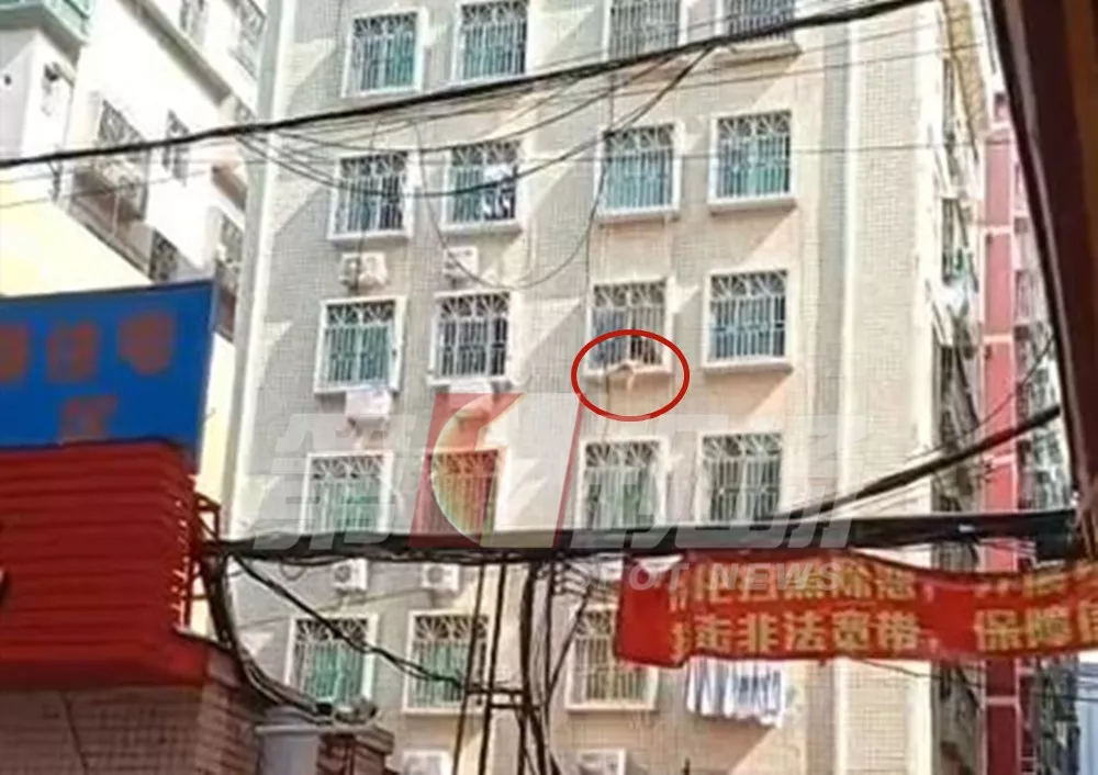 在深圳龍崗坂田,有小孩被卡在防盜窗上