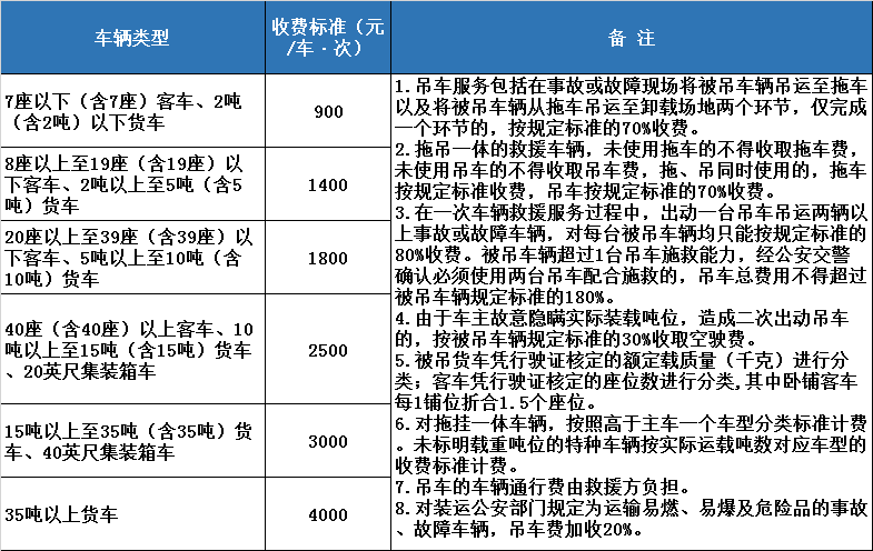 廣東省高速公路吊車服務(wù)收費(fèi)標(biāo)準(zhǔn)見下表: